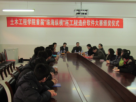 12月10日下午,大赛颁奖仪式在土木工程学院办公楼会议厅隆重举行,党总支副书记孙洪彬同志主持了仪式。颁奖仪式上,李仕东副院长首先公布了比赛获奖名单,徐晓剑等六名同学分别获得一二三等奖,与会领导和老师为获奖同学颁发了证书和奖品,并合影留念。会议随后,珠海纵横创新有限公司罗发明经理和倪宏革院长分别就本次比赛发表讲话,他们对本次软件大赛的成功举办给予了充分的肯定,并将大赛的意义、产生的积极作用和影响做了精确的阐述,对同学们在今后的学习也提出了明确的希望和要求。