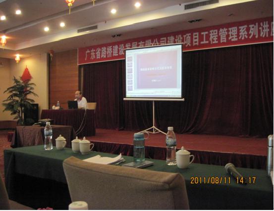 2011年8月8日~12日,广东省路桥建设发展有限公司组织梅大、二广、汕揭、揭博等项目新员工及相关工程技术管理人员。在梅州,连州两地,举办了工程管理系列讲座。会议邀请了路桥公司的六位总工以及珠海纵横创新软件有限公司的代表给学员进行授课。讲座含金量高,学员学习热情高涨。通过此次培训。切实解决了学员工作中遇到的困难。